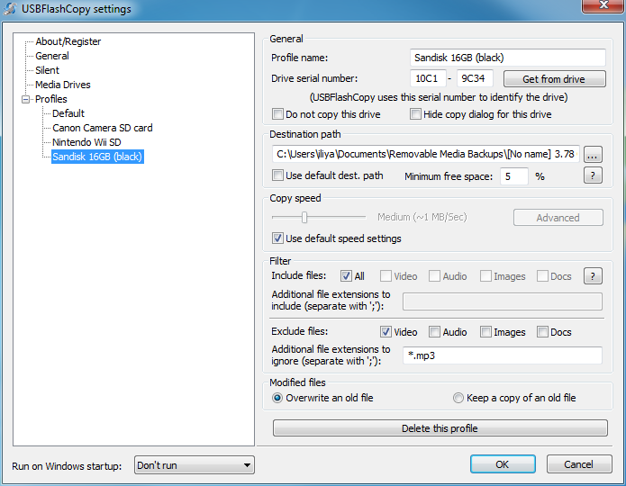 USBFlashCopy is a small Windows utility to back up your flash drives and storage cards on the fly. It runs in the background and copies files from inserted media to a safe location on your hard drive.